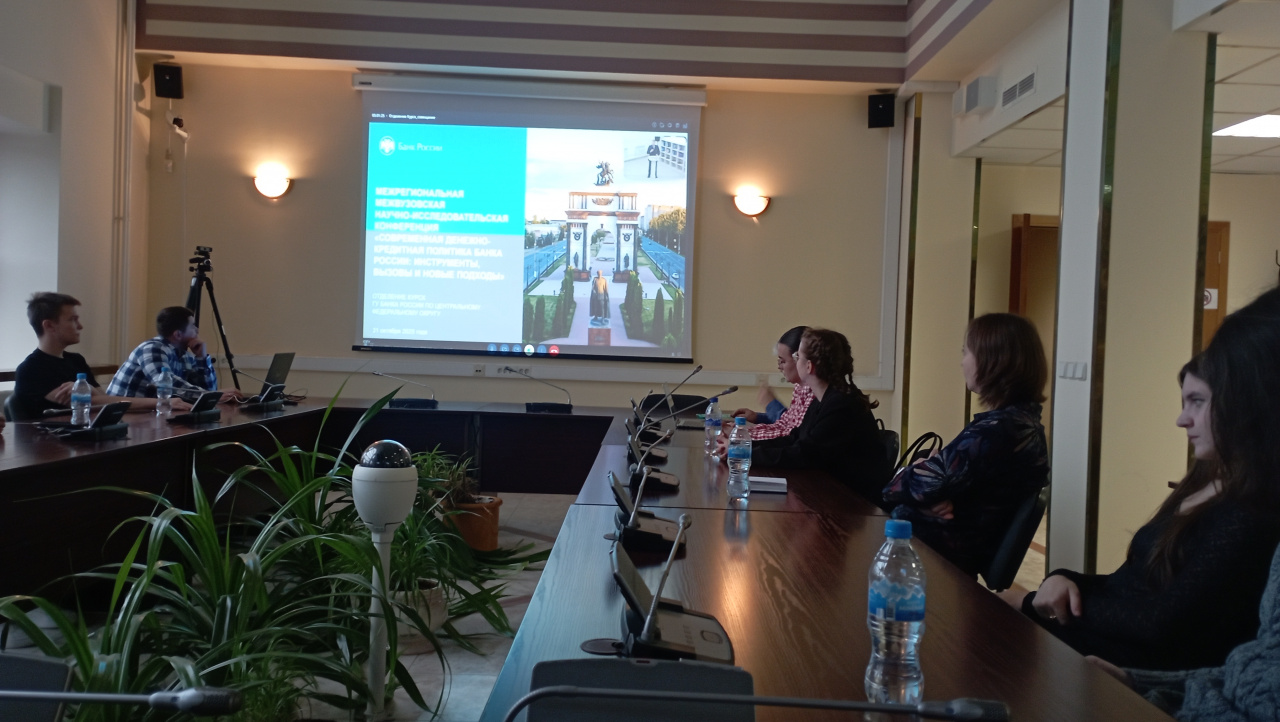 31 октября 2025 года в Юго-Западном государственном университете (г. Курск) прошла Межрегиональная межвузовская научно-исследовательская конференция «Современная денежно-кредитная политика Банка России: инструменты, вызовы и новые подходы» с участием профессорско-преподавательского состава, аспирантов и студентов вузов Курской области (очно), с дистанционным подключением участников Белгородской, Брянской и Ивановской областей. В конференции приняли участие представители Института социально-экономических наук Ивановского государственного университета: доцент кафедры финансов, бухгалтерского учета и банковского дела Н.Ю. Смольницкая, а также студенты 3-го курса направления «Экономика» направленности «Финансы и кредит» – Анна Саванова, Егор Данилов и Алёна Лишнева.