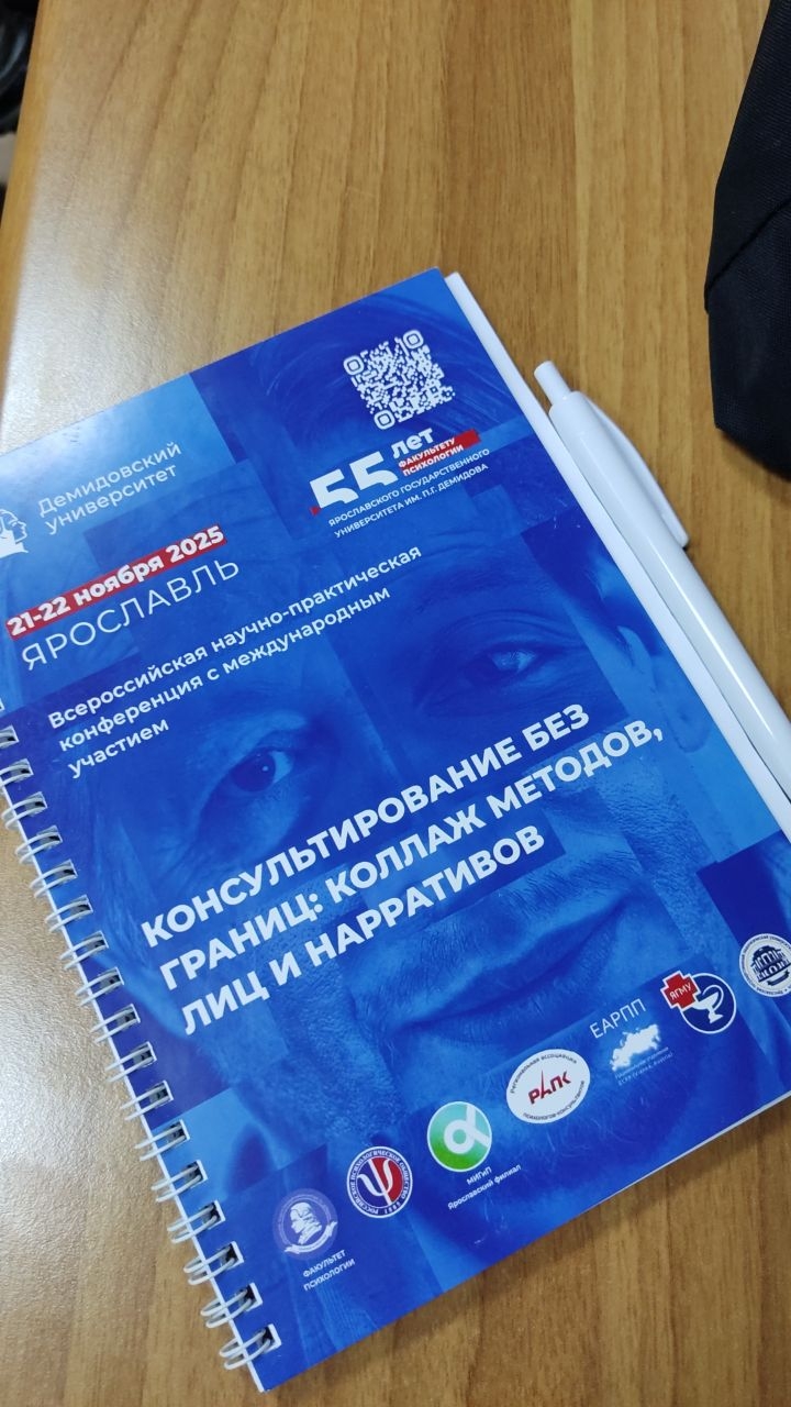 21 - 22 ноября в Ярославле состоялась Всероссийская научно-практическая конференция с международным участием "Консультирование без границ: коллаж методов, лиц и нарративов". Мероприятие проходило на базе Ярославского государственного университета имени П. Г. Демидова. Конференция приучена к празднованию 55-летию факультета Психологии.