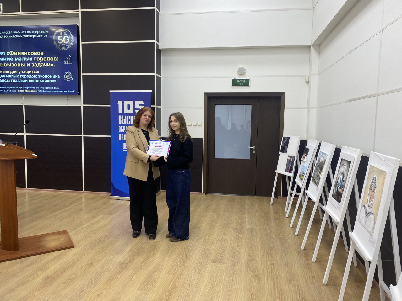 14 апреля в конференц-зале учебного корпуса № 6 в рамках ежегодной конференции "Молодая наука в классическом университете" состоялась работа двух секций «Финансовое состояние малых городов: новые вызовы и задачи» и «Будущее малых городов: экономика и финансы глазами школьников». К началу работы конференции была подготовлена персональная выставка картин «Грани души» студентки 1 курса направления подготовки 38.03.01 Экономика (Финансы и кредит) Дианы Арутюнян.