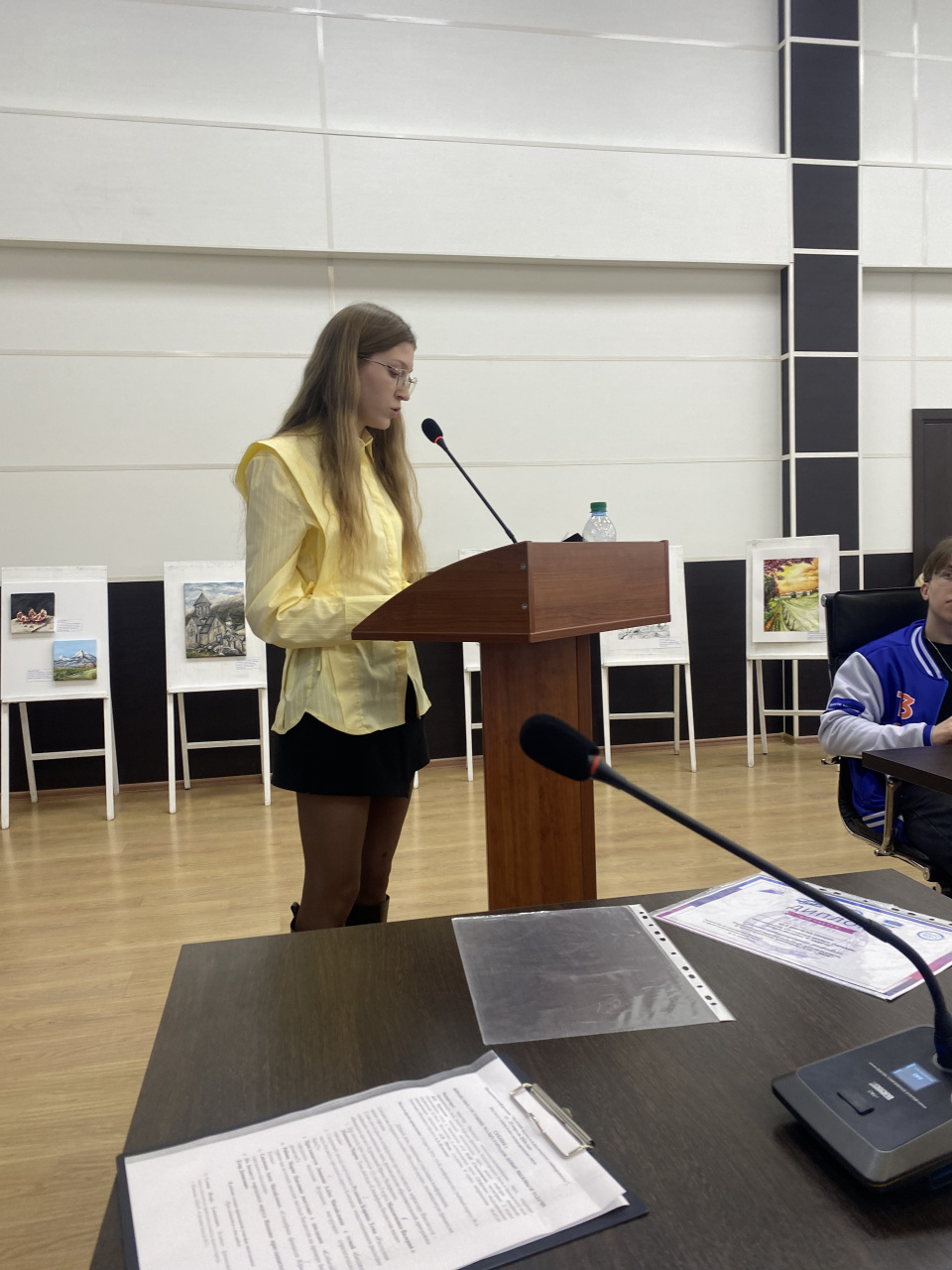 В завершении работы секций Ирина Валерьевна поблагодарила всех участников конференции, подвела итоги и продемонстрировала ролик первого выпуска специальности «Финансы и кредит». Выставку картин Дианы Арутюнян предложила продлить в холле 6 этажа, чтобы ближе познакомиться с ее творчеством.