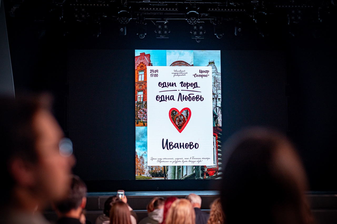 24 апреля состоялась премьера интерактивного спектакля ИвГУ «Один город - одна любовь», посвященного 155-летию города Иваново. На сцене центра «Солярис» оживали творческие картинки, олицетворяющие историю нашего города. Образ «ожившего герба» города Иваново, который исполнила Мисс ИвГУ 2025 – Валерия Бражникова, открыл спектакль, и через сотканные нити в исполнении педагогов-хореографов на сцене появлялись целые полотна ивановских тканей, из которых были выполнены коллекции костюмов. От большого ситцевого хоровода, в котором одновременно на сцене появились 17 девушек, до авторской коллекции, где в каждый костюм был заложен смысл, олицетворяющий малые города Ивановой области.