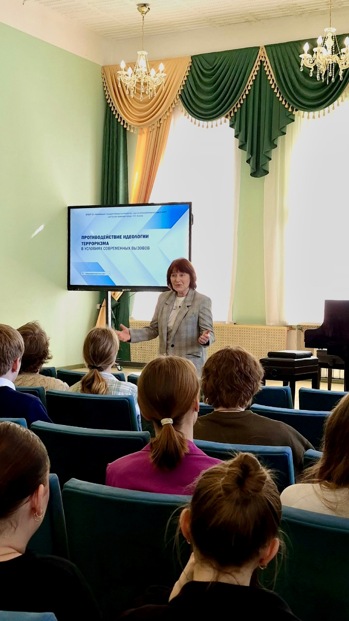 В ходе мероприятия Нина Валентиновна подробно осветила понятие «террор», его причины, цели и исторические аспекты распространения террористической деятельности. Особое внимание было уделено ценностно-смысловым основам права в контексте противодействия идеологии терроризма, среди которых: должное; свобода; формальное равенство; уважение права другого; принятие разного; признание способности и возможности действовать во благо общества при реализации своих интересов.