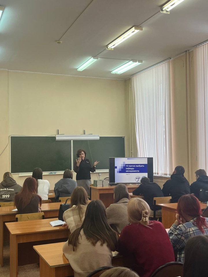 Доцент кафедры менеджмента Сокова И.А.рассказала о составляющей новой программы – УПРАВЛЕНИИ в рамках подготовленной кафедрой менеджмента презентации "10 причин изучать направление "менеджмент" (управление) в ИвГУ". Среди них: 1) менеджер – это лидер, новатор, стратег!; 2) профессия нужна каждой организации; 3) обучение ведут квалифицированные преподаватели, в т.ч.доктора наук; 4) обучение привязано к практике организаций и предприятий; 5) студенты приобретают необходимые качества – умение эффективно управлять коллективом, вырабатывать оптимальные управленческие решения, формировать управленческие команды и др.; 6) выпускники кафедры успешны в г. Иваново и Ивановской области и других регионах; 7) студенты имеют отличные условия для обучения, самореализации, занятий спортом; 8) в ИвГУ активно развиваются программы дополнительного образования; 9) на кафедре действует аспирантура; 10) менеджмент – это умение правильно ставить и реализовывать свои собственные ЖИЗНЕННЫЕ Цели!