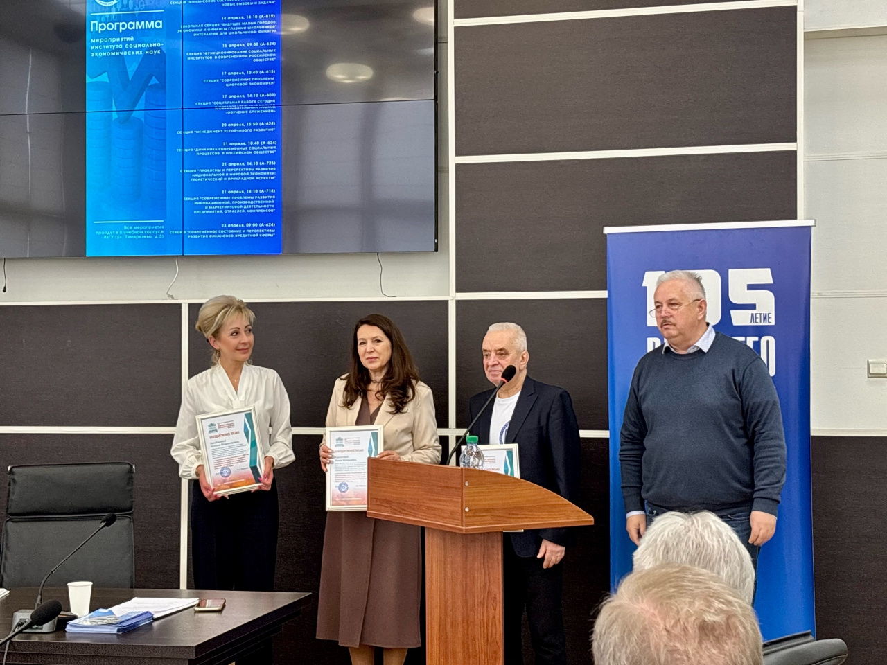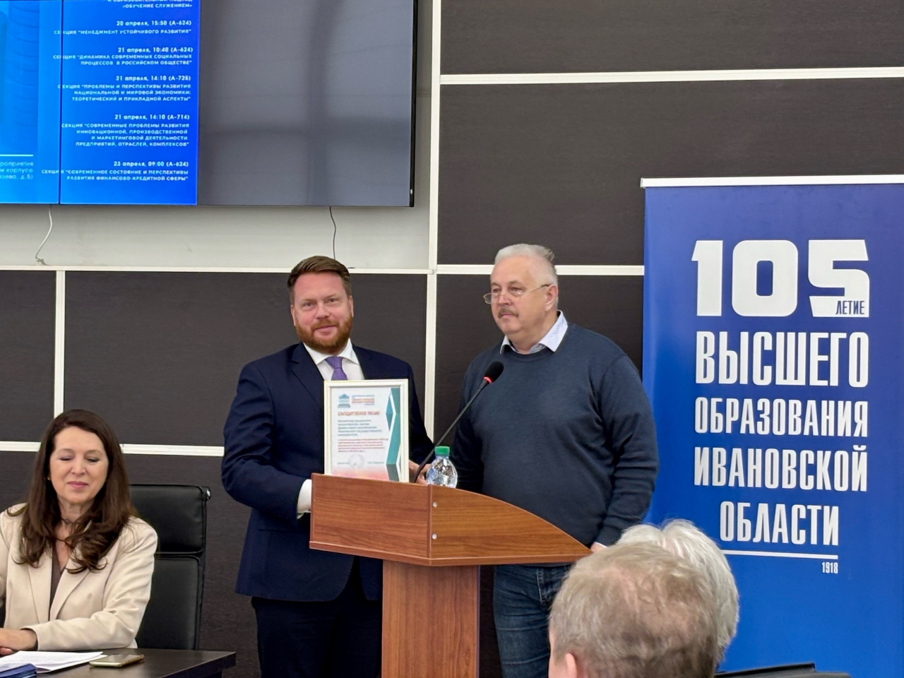 Сергей Львович вручил также благодарственные письма директору ИСЭН И.В. Курниковой, заместителю директора Н.В. Балабановой и доценту кафедры менеджмента В.Э. Савину за значительный вклад в популяризацию в 2025 году идей финансовой грамотности при реализации региональной программы «Повышение уровня финансовой грамотности населения Ивановской области на 2025-2030 годы».